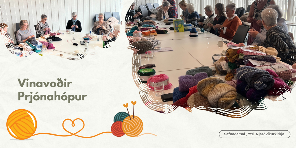Vinavoðir er hópur sem prjónar og heklar í þágu samfélagsins. Boðið er upp á léttan hádegisverð.